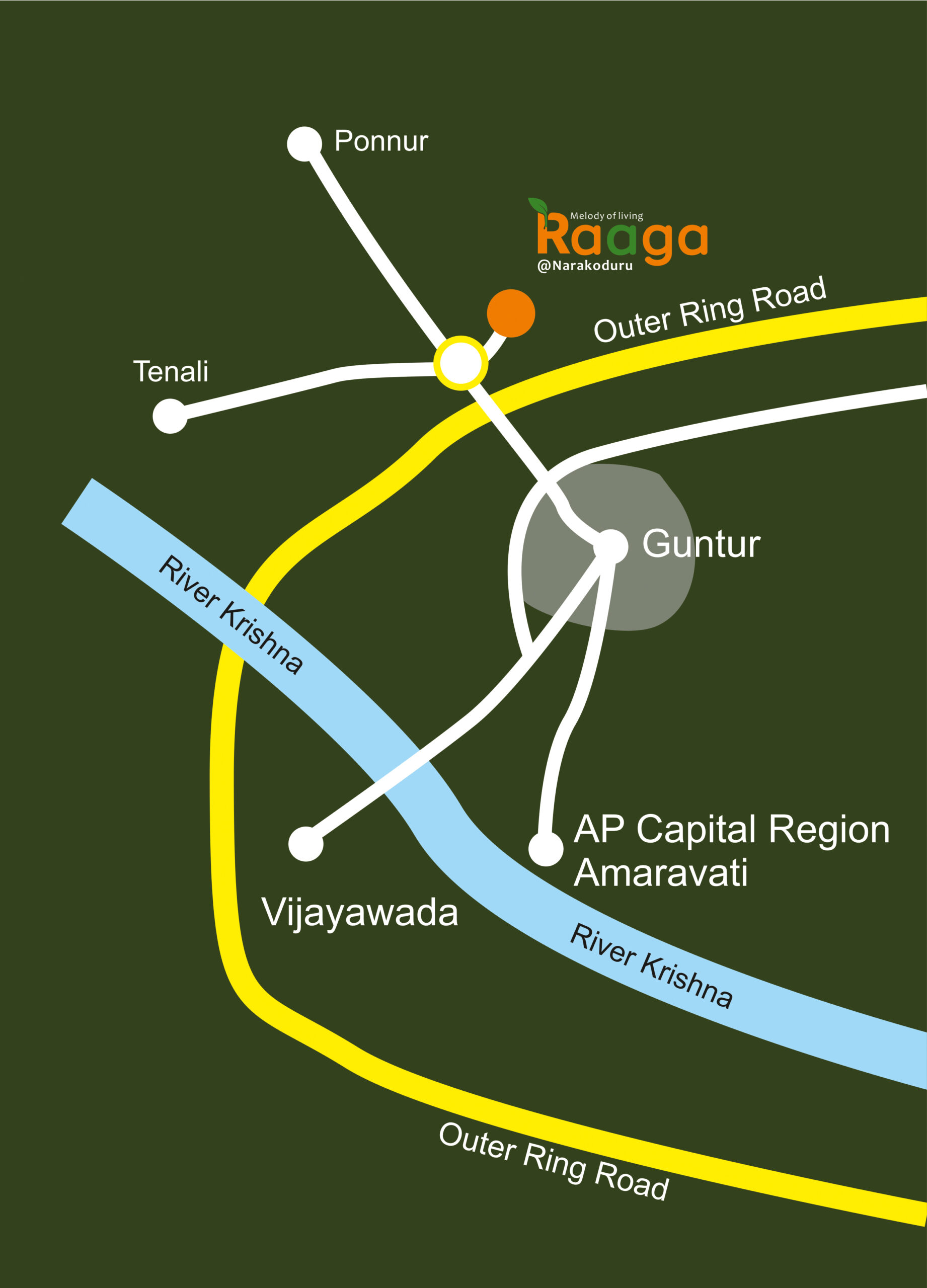 Raaga is strategically located near Guntur and Amaravati. blending urban convenience with natural serenity. Surrounded by 15+ years aged mango trees on rich red soil, it offers a private, forest-like atmosphere designed as a peaceful weekend retreat.